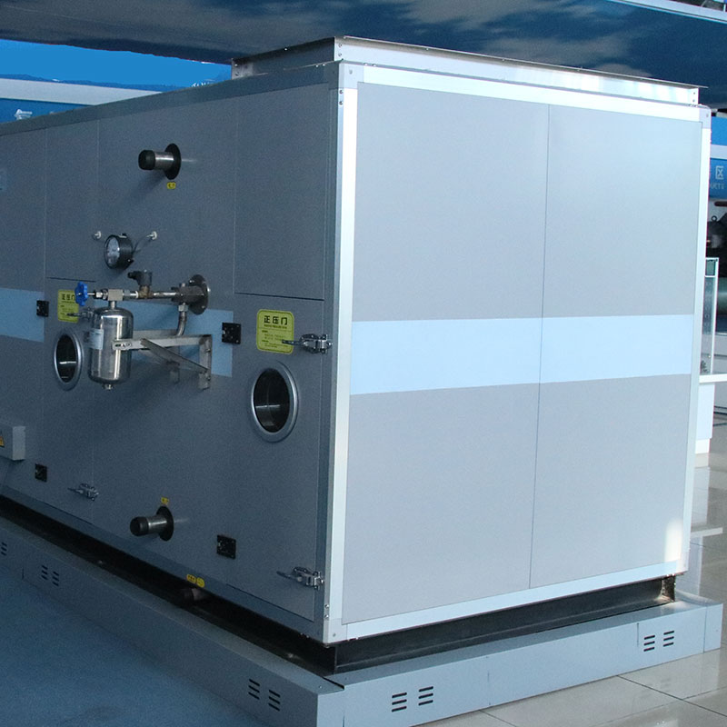 组合式净化空调机组初效段:采用无纺布板式初效过滤器,初步过滤新风中的大颗粒 组合式净化空调 组合式净化空调 [1] 尘埃,以满足机组内部的卫生要求及减轻中效过滤段的负担; 中效段:采用无纺布袋过滤器,过滤空气经管道及机组所生产的二次尘埃,以减轻亚高效过滤器或高效过滤器的负担; 风机段:采用低噪音离心风机,噪声低、风压大;根据客户要求,可选用变频控制; 表冷段:表冷盘管面风速≤2.5m/s,并采用亲水膜平翅片制作,换热效果好且不易积尘滋菌,不会产生带水现象; 加热段:可采用热水加热、蒸汽加热、电加热等;电加热采用不锈钢光管制作,表面光滑无翅片,耐腐蚀,不易积灰,易清洗; 加湿段:可采用干蒸汽加湿或电极加湿,确保停机后加湿器内无积水,消除加湿器内细菌滋生的可能性; 灭菌性:可选用紫外线或臭氧发生器进行灭菌,彻底破坏机组内细菌的生存环境;